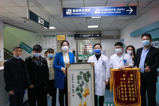 11月29日經過大半個月的住院治療,唐斌的身體逐漸康復,具備出院回家休養條件。出院當天,三友環保副總經理張艷帶隊,協同唐斌家人一起,向多所醫院的醫務工作者表示感謝,并送上錦旗。