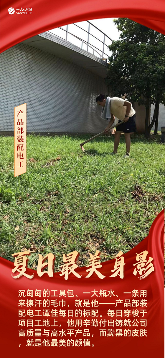 可面對高溫的“烤驗”,仍然有一批三友人不畏熱浪、不懼灼陽,全然不顧汗水浸透了衣衫,用汗水澆灌奮斗夢想,用奉獻書寫勞動人生。