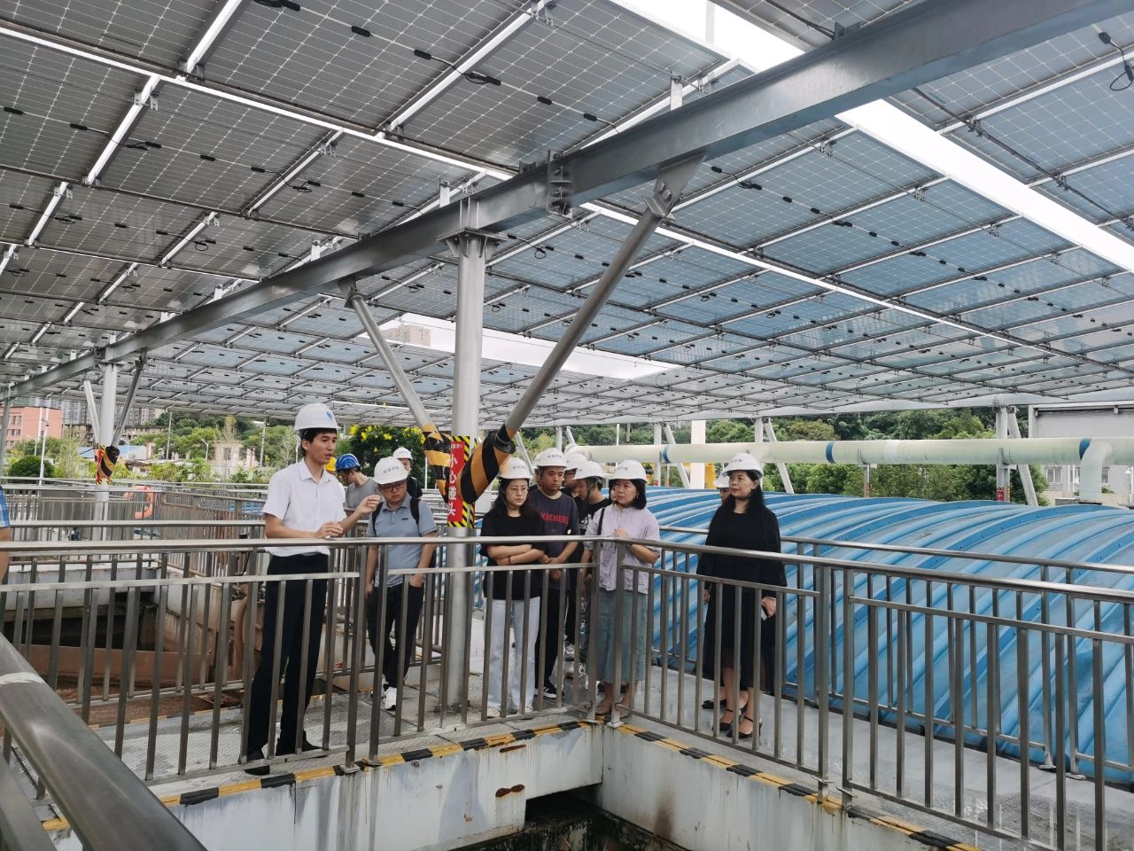 (圖為考察組一行參觀新開(kāi)鋪水質(zhì)凈化廠)