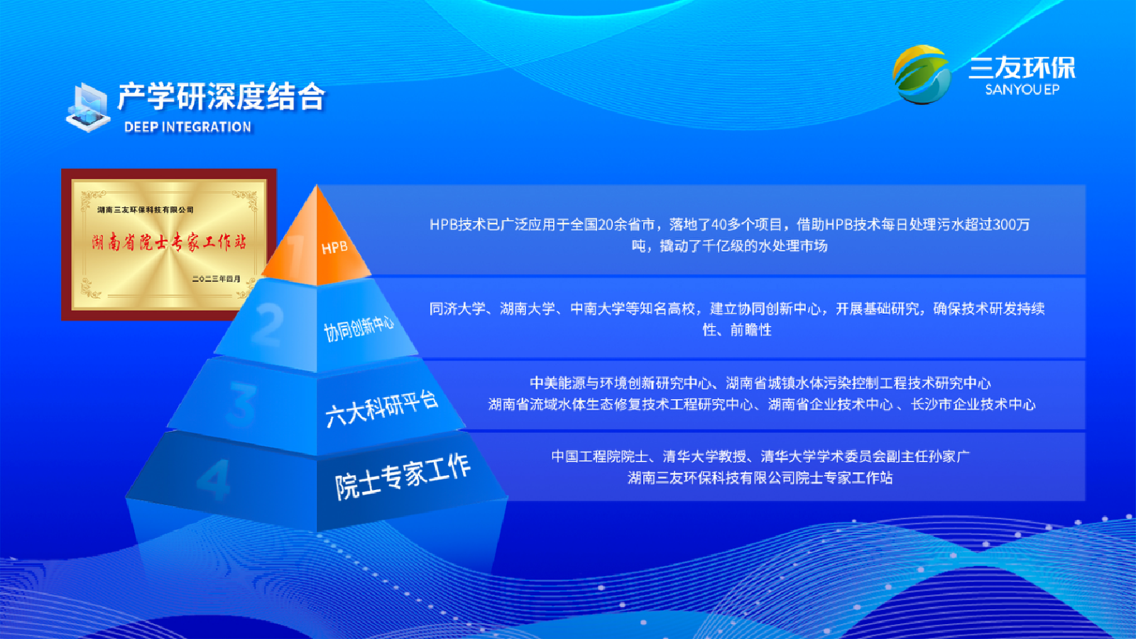 以創(chuàng)新基因匯聚發(fā)展“硬核”力量,三友環(huán)保依托“院士工作站+六大科研平臺(tái)+協(xié)同創(chuàng)新中心”的創(chuàng)新研發(fā)體系,著力突破污水處理多項(xiàng)關(guān)鍵核心技術(shù),為水環(huán)境治理的“美麗蝶變” 賦能。其自主創(chuàng)新研發(fā)的高濃度復(fù)合粉末載體生物流化床技術(shù)(簡(jiǎn)稱HPB技術(shù))作為一種高效低碳同步脫氮除磷技術(shù),不僅可以在不新增用地、不改動(dòng)現(xiàn)狀土建設(shè)施、不停產(chǎn)不減產(chǎn)的情況下,對(duì)現(xiàn)狀廠區(qū)進(jìn)行升級(jí)改造,提高微生物活性,強(qiáng)化脫氮除磷效率,還能節(jié)省投資運(yùn)行成本20%以上,節(jié)省用地50%以上,節(jié)省工期30%以上,同時(shí)每噸水碳排放能降低20%以上,實(shí)現(xiàn)生態(tài)效益、社會(huì)效益、經(jīng)濟(jì)效益的多贏局面。