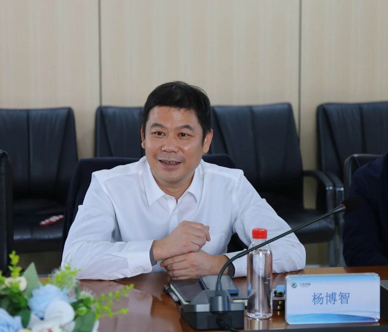 王伏虎一行先后參觀了三友環保企業文化展廳、創新研發中心及數字化區域智慧控制中心,對三友環保發展歷程、業務布局等發展現狀進行了了解,并就公司的行業地位、未來規劃及合作發展的方式展開座談交流。