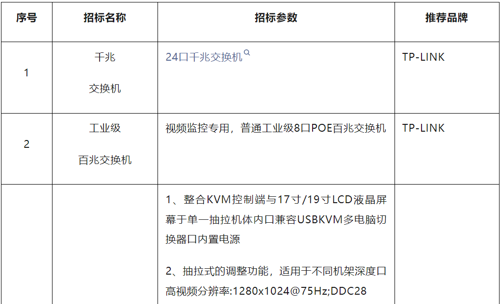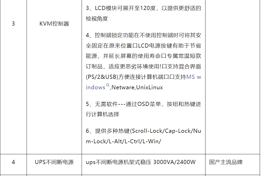 (2)依照招標技術要求,投標人提供產品詳細的技規清單