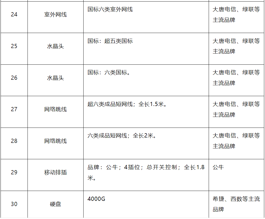 2、材質要求: 按照標的清單中備注要求執行。