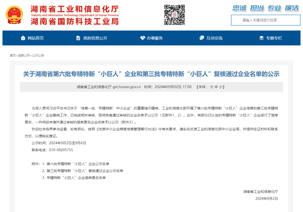 近日,湖南省工業和信息化廳對第三批專精特新“小巨人”復核通過企業名單進行公示?;诠驹趯I化、精細化、特色化、創新能力以及產業鏈配套和主導產品等方面的發展實踐和積極成果,三友環保順利通過第三批專精特新“小巨人”企業復核,榮耀蟬聯,進一步證明了三友環保在行業內的技術實力、創新能力和市場競爭力。