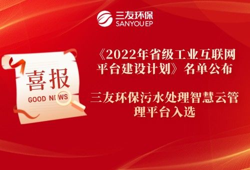 《2022年省級工業互聯網平臺建設計劃》名單公布,三友環保污水處理智慧云管理平臺入選