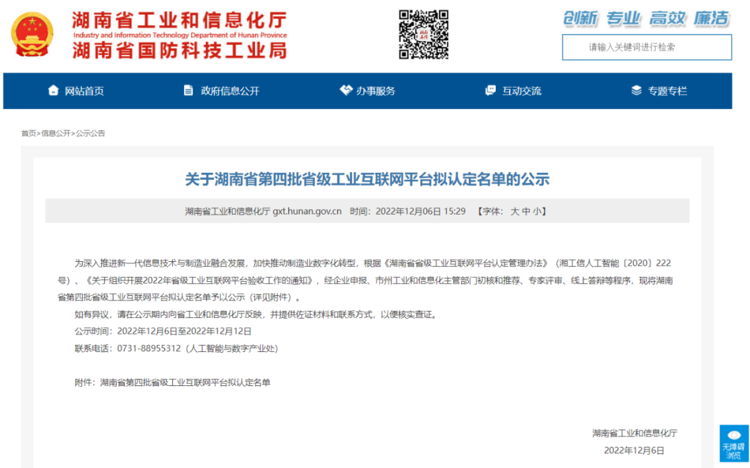 (圖為湖南省工信廳公示)